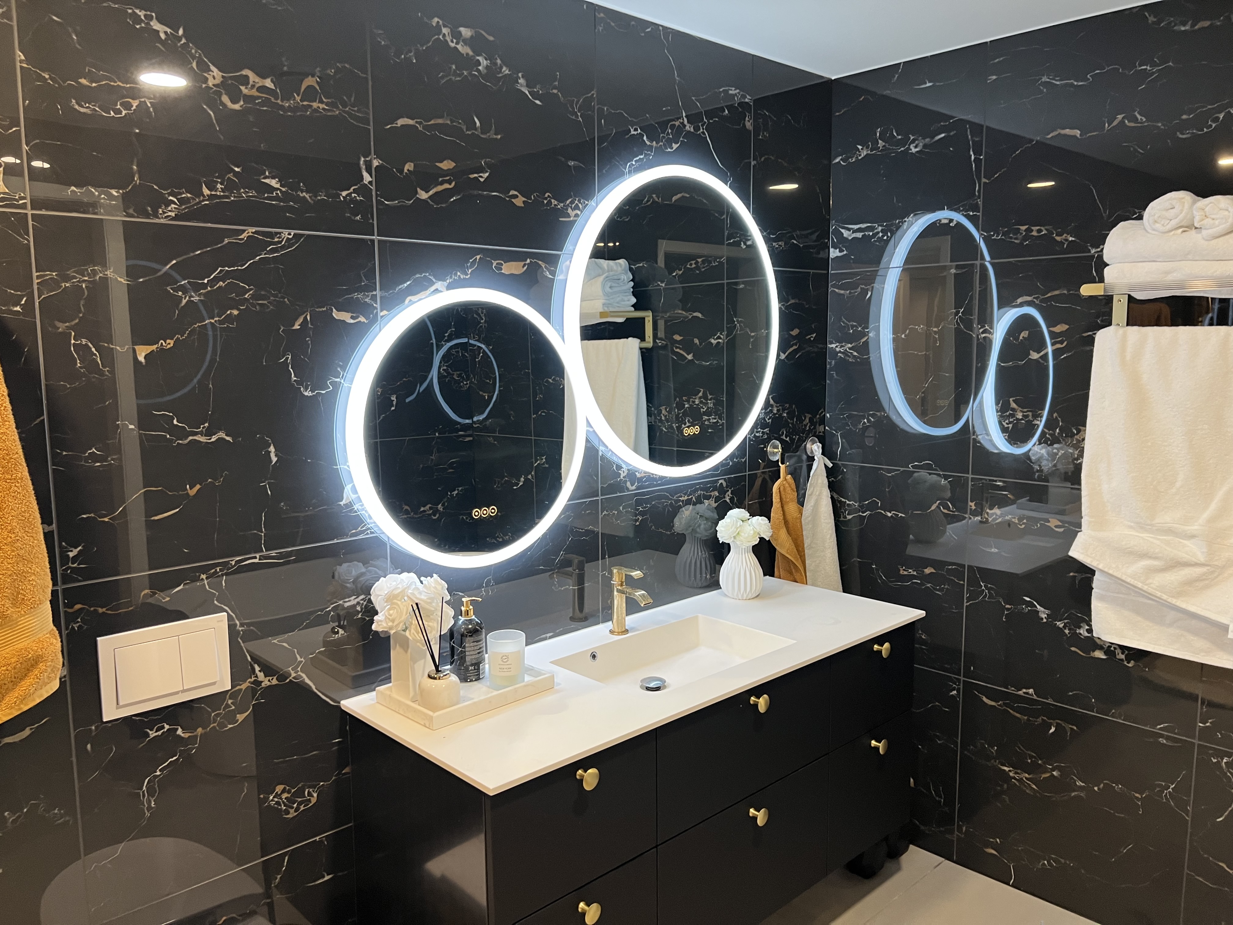 Rett og slett nydelig håndverk! Flytsparkling/avretting av samtlige rom i underetasje. Støping av gulv på vaskerom og baderom, samt flislegging av bad. Alt uført som avtalt og til avtalt pris. Kjempe god service i hele prosessen. Flisleggingen på badet er nydelig med fugene helt i kant i kant i alle overganger mellom de forskjellige størrelsene på flisene. Bazika Flis og Mur har vår varmeste anbefaling.